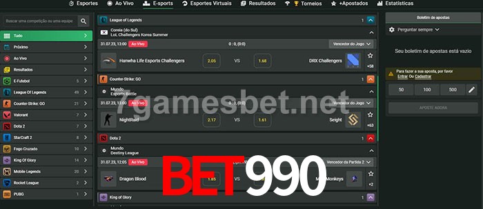 O Bet990 oferece uma grande seleção de opções de apostas em e-sports com probabilidades competitivas